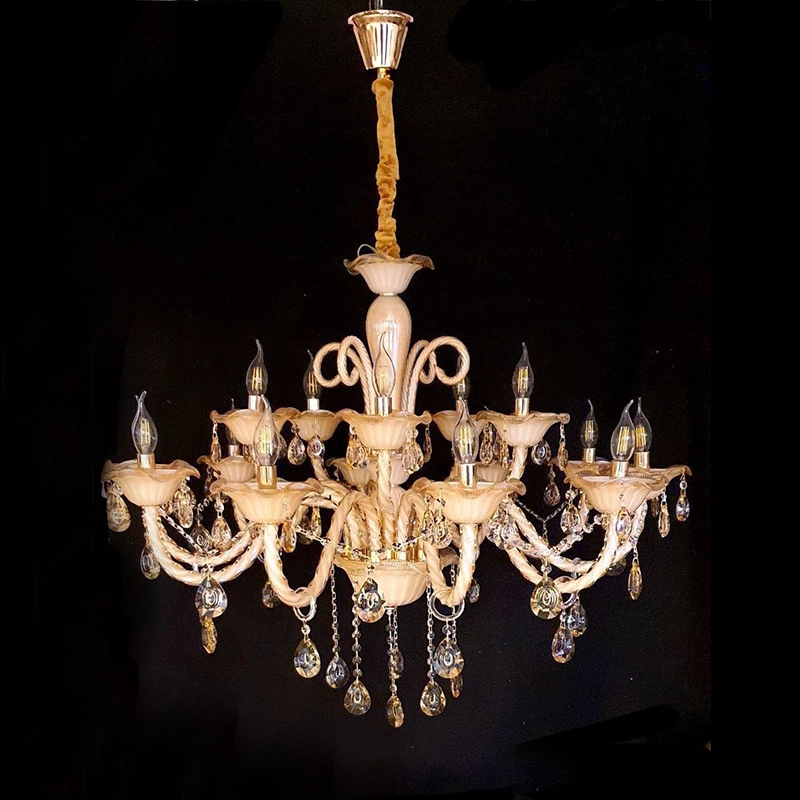 لوستر اشرافی کریستالی طلایی شاخه منحنی