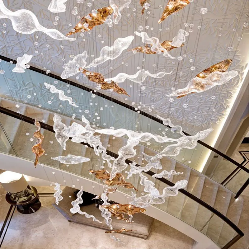 لوستر دکوراتیو هنری مدل جریان آب با طراحی سیال و فرمهای نرم، الهامگرفته از حرکت پیوسته آب در طبیعت است. این لوستر با خطوط روان و ساختار غیرایستا، حس پویایی، آرامش و هنر معاصر را به فضای داخلی منتقل میکند و خود بهعنوان یک المان هنری شاخص در دکوراسیون عمل میکند.