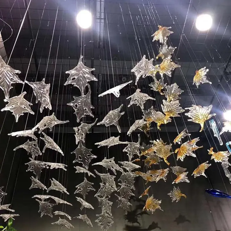 لوستر آویز کریستالی طرح برگ پاییزی