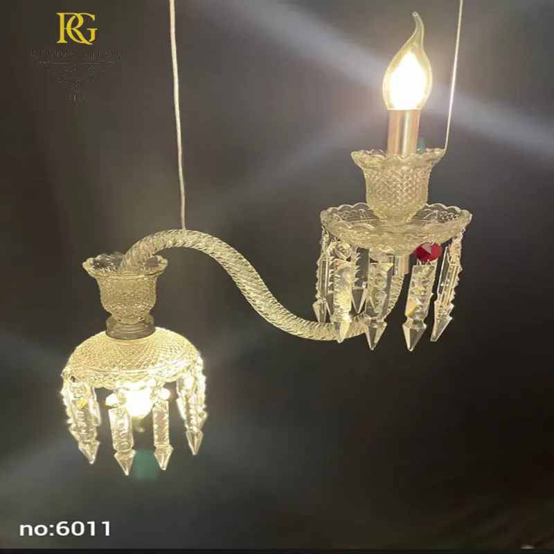 لوستر دو شعله کریستالی باکارات با بدنهی شیشهای خمیده، ترکیبی از طراحی کلاسیک و جلوه لوکس است که با سبک باکارات مینیمال و لاکچری جلوهای فاخر و شیک به فضاهای داخلی میبخشد. این لوستر شامل دو شعله با بدنه شیشهای خمیده و خوشفرم است که به صورت متقارن از مرکز منشعب میشوند و تعادل بصری بالایی ایجاد میکنند.