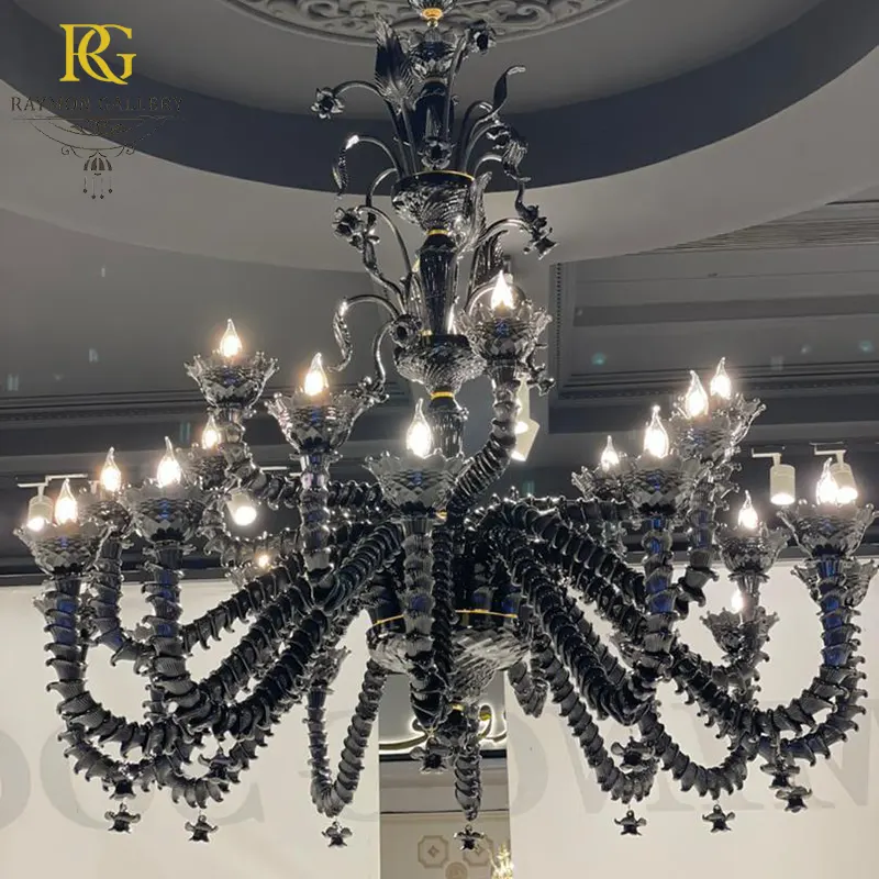 لوستر مشکی مورانو کلاسیک با شاخههای کریستالی پیچدار