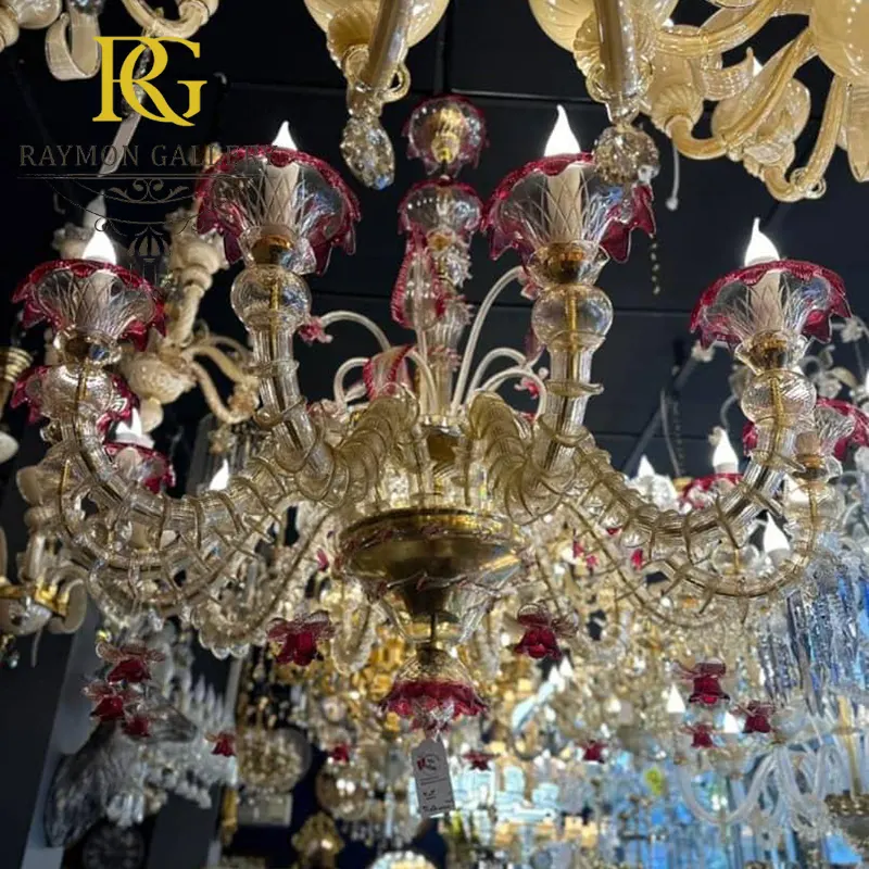 لوستر مورانو کلاسیک با شاخههای رنگی لاکچری