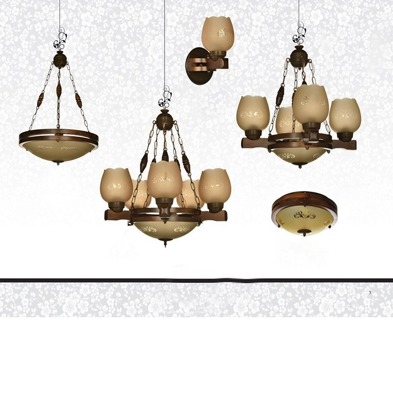 مجموعه لوستر کلاسیک چوبی حباب لالهای کرمی