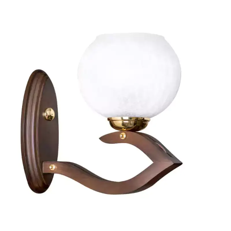 حباب شفاف، نور را به طور یکنواخت و ملایم پخش میکند و از تابش نور شدید و ناراحتکننده جلوگیری میکند. بدنه چوبی قهوهای تیره، با بافت طبیعی چوب، حس گرمی و لوکس ایجاد میکند. این ترکیب، نورپردازی ای را ارائه میدهد که هم زیبا است و هم احساس آرامش را در فضا ایجاد میکند.