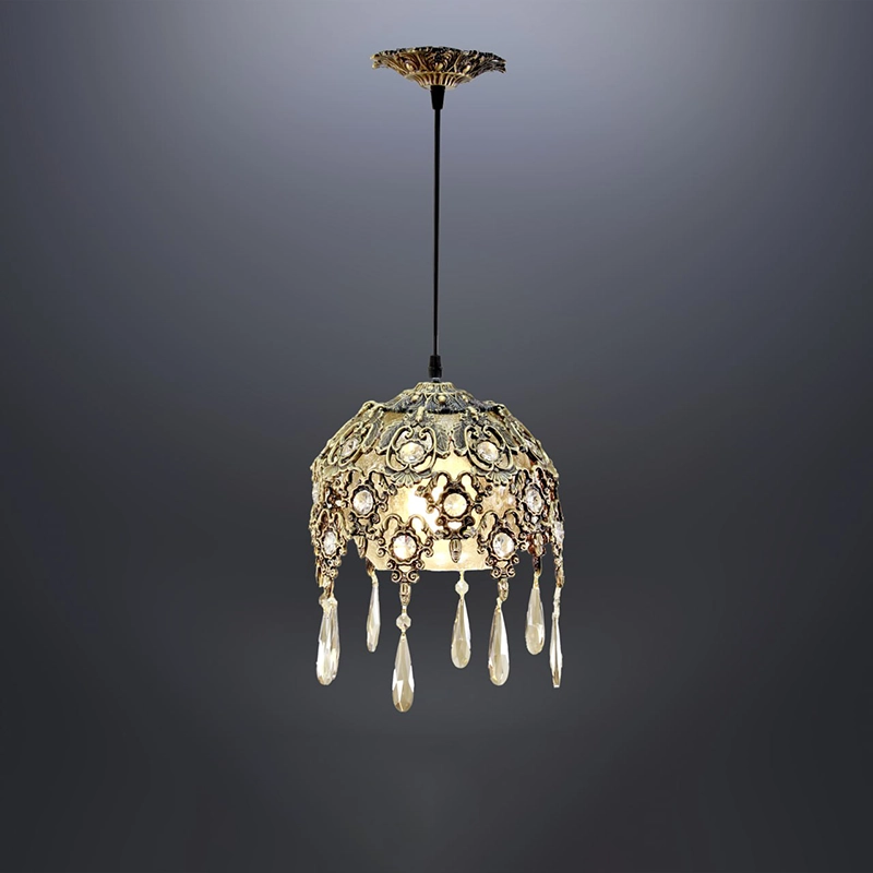 لوستر کریستالی آویزی طلایی بلند