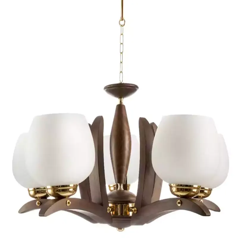 لوستر چوبی سبک مدرن 5 شعله با حباب مات