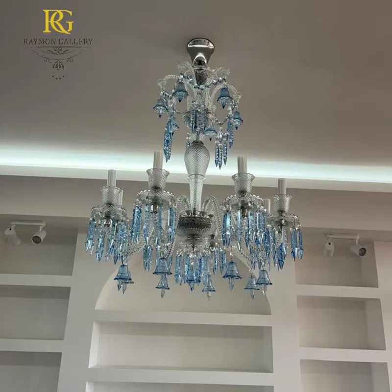 لوستر منحنی باکارات سفید آبی مدرن زنیت، ترکیبی چشمگیر از طراحی معاصر و رنگبندی ملایم و خاص است. بدنهی منحنی ظریف با آبکاری لوکس، در کنار کریستالهای سفید و آبی شفاف، جلوهای تازه و آرامشبخش در محیط ایجاد میکند. سبک مدرن آن بهخوبی با دکوراسیونهای مینیمال و مجلل هماهنگ میشود. این محصول با قابلیت ساخت سفارشی در ابعاد، رنگبندی، تعداد شاخهها و نوع کریستال، گزینهای بیهمتا برای فضاهای خاص و سالنهای لوکس به شمار میآید.