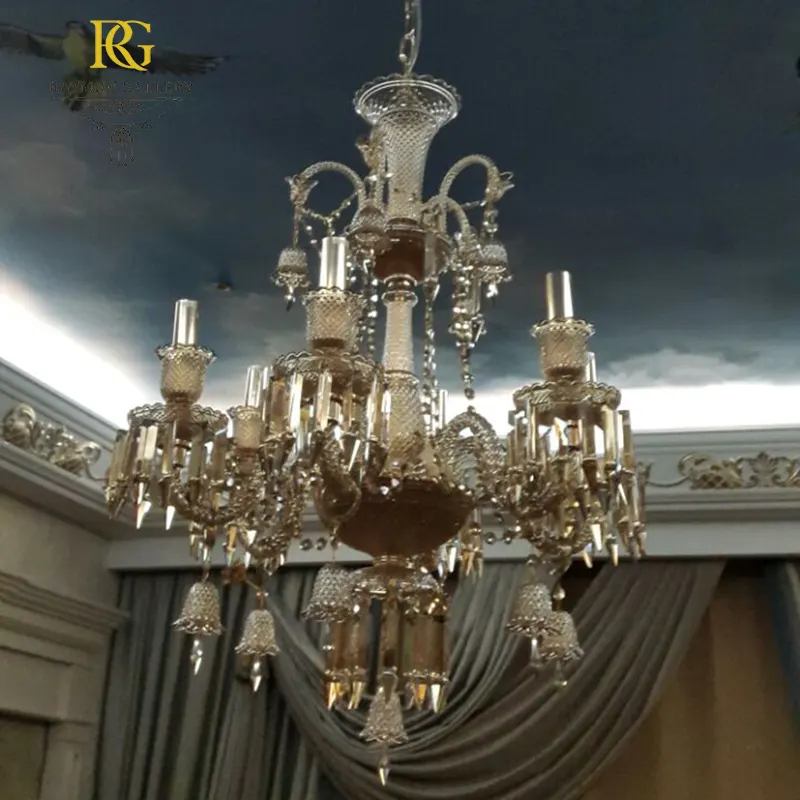 لوستر باکارات شامپاینی لوکس با آویز منشوری