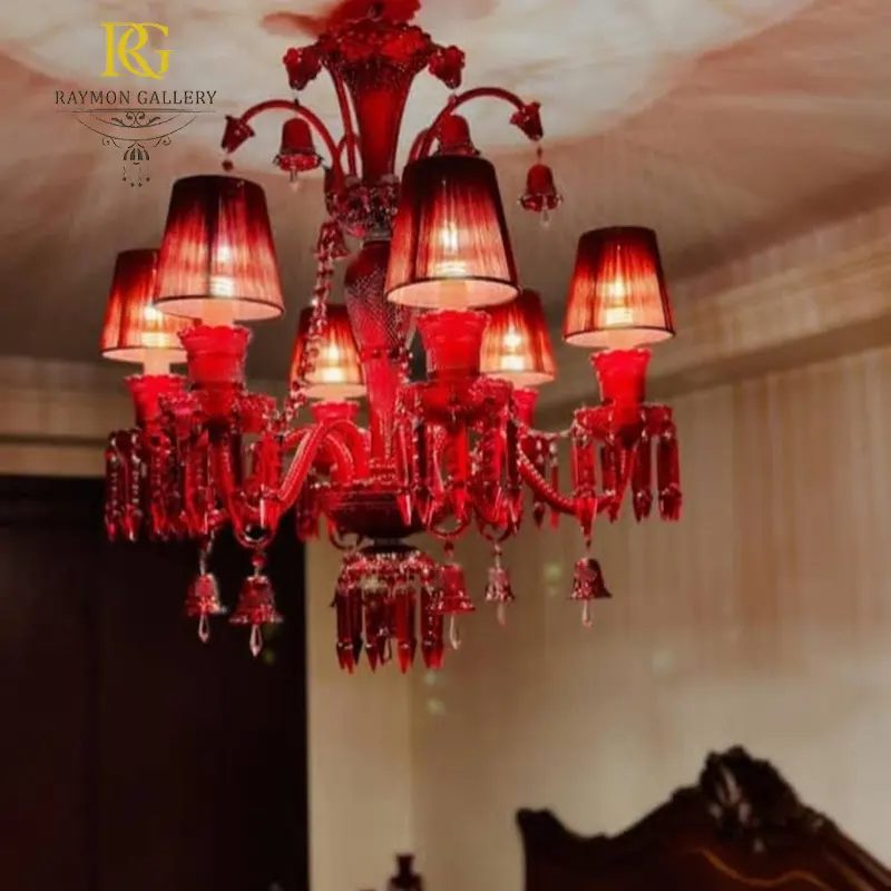 لوستر باکارات قرمز مدرن لوکس همراه با شید قرمز