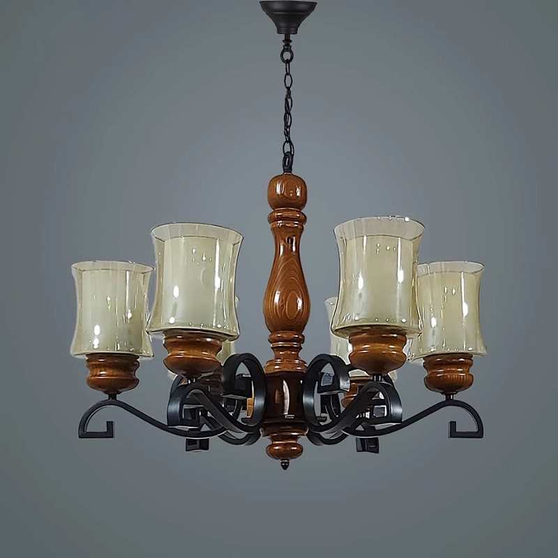 لوستر مدرن چوبی لاکچری 6 شاخه شید دار