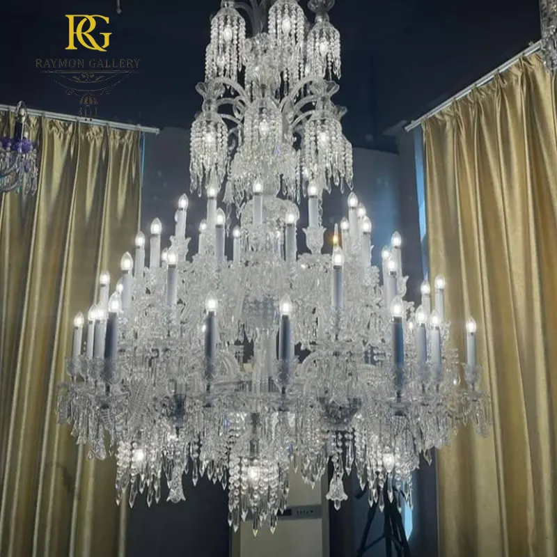 لوستر شفاف سه طبقه کریستالی لوکس سبک باکارات