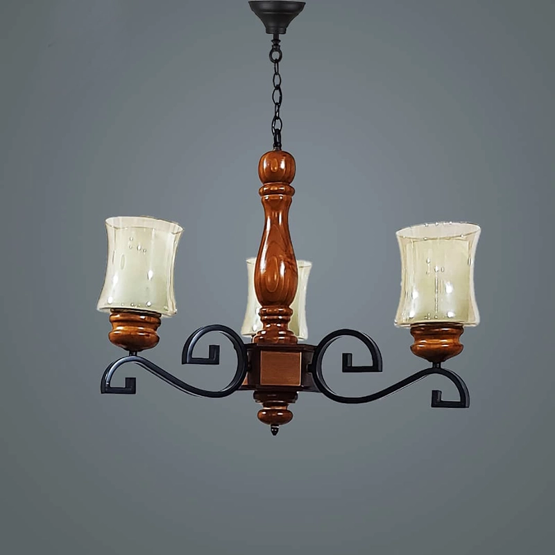 لوستر مدرن 3 شاخه شید دار چوبی لاکچری