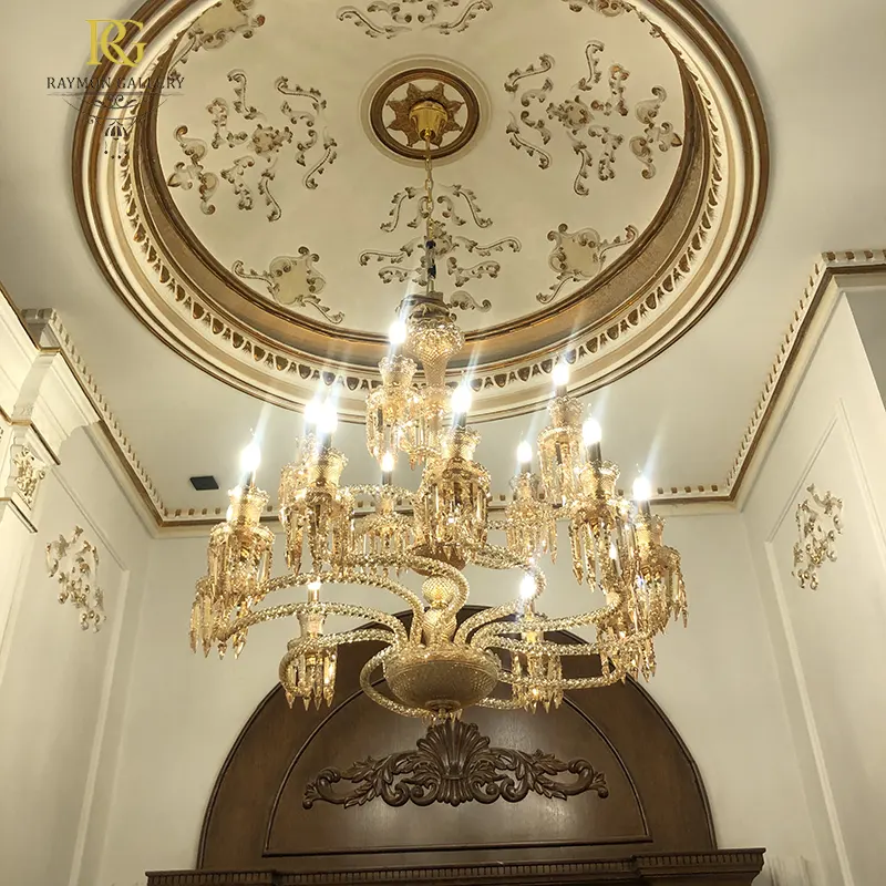 لوستر ماری باکارات کریستال طلایی، تجلی اصالت هنر کلاسیک و درخشش اشرافی کریستالهای منشوری است. طراحی فریم طلایی با انحنای ظریف شاخهها، ترکیب نور گرم و انعکاس کریستال را به سبکی سلطنتی و چشمگیر ارائه میدهد.