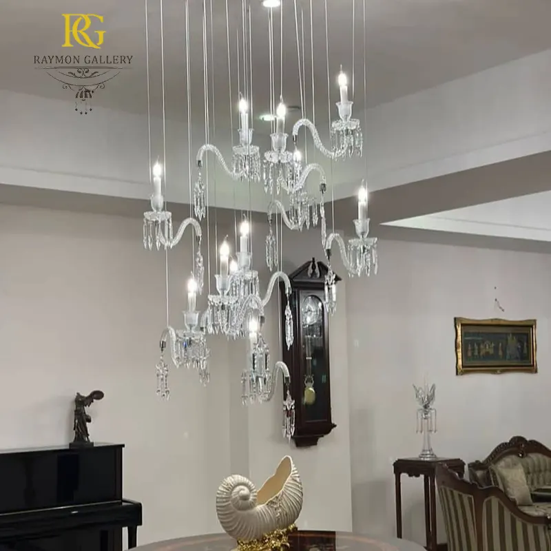 لوستر مدرن کریستالی ریسهای آویز خطی نمایی از هنر معاصر در نورپردازی داخلی است؛ رشتههای ظریف کریستال با انحنای هنرمندانه بازوها از سقف آویخته شدهاند تا درخشش آرام و چشمنواز به فضا ببخشند. ترکیب طراحی خطی و فرم شناور این مدل، جلوهای مینیمال و اشرافی برای دکورهایی با سقف بلند و سبک مدرن دارد.