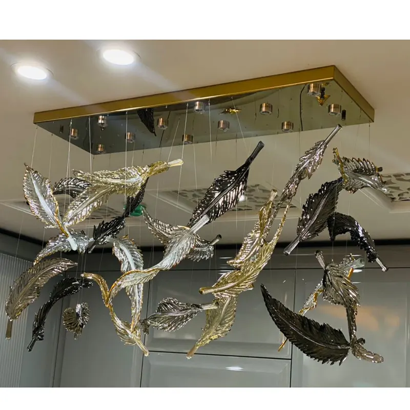 لوستر مدرن طرح برگ معلق با طراحی خلاقانه و آویزهای شناور، حس سبکی و حرکت را در فضای داخلی ایجاد میکند. فرم معلق برگها در کنار چیدمان دقیق آویزها، جلوهای هنری و مدرن به لوستر میبخشد و آن را به نقطه کانونی دکوراسیون تبدیل میکند.
