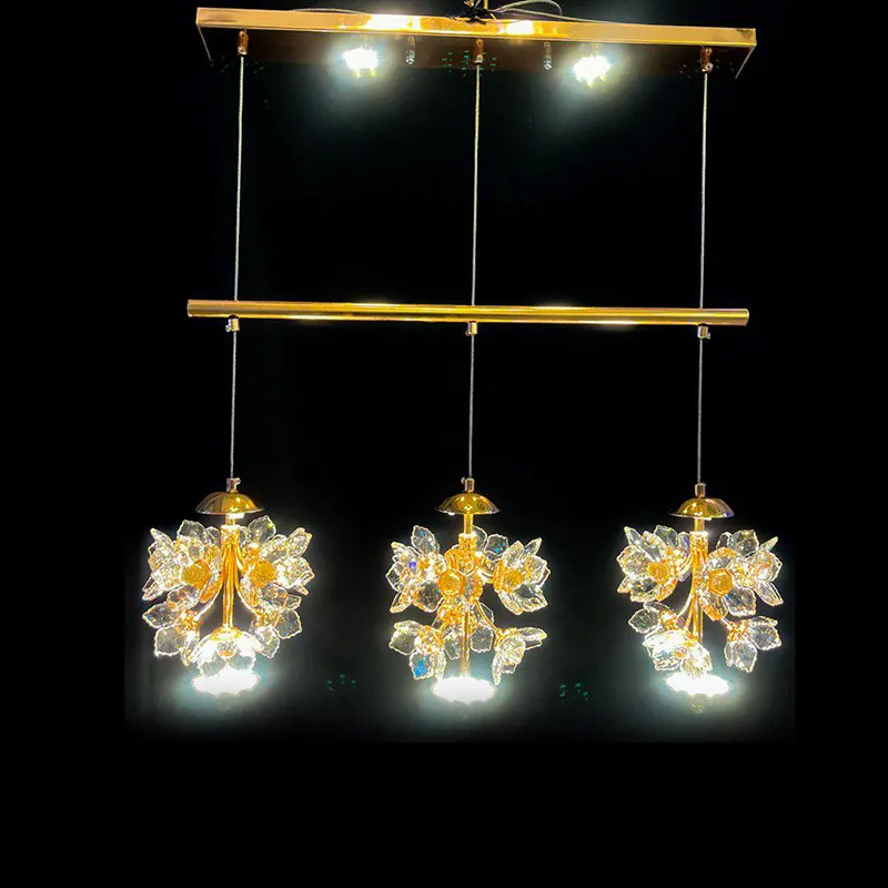 لوستر خطی مدرن طلایی و آویز گل کریستالی