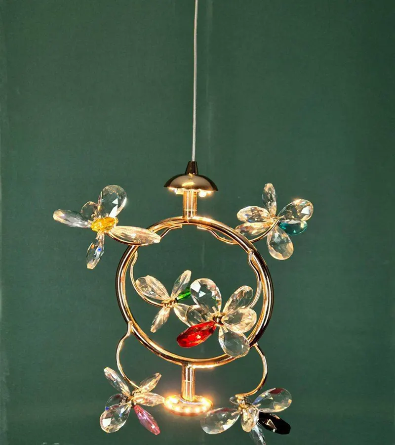 لوستر مدرن دایرهای با گلهای رنگی کریستالی