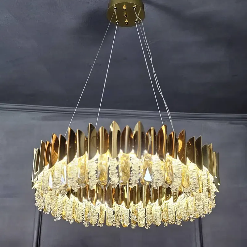 در این مدل، شاخههای فلزی طلایی با فرم منحنی و براق در کنار کریستالهای آویز شفاف و خوشتراش قرار گرفتهاند که تداعیکننده شاخههای نباتی درخشان هستند. این چیدمان باعث شکست نور از زوایای مختلف شده و نوری گرم، یکنواخت و بسیار درخشان در محیط ایجاد میکند. فرم گرد لوستر و تراکم منظم کریستالها، آن را به نقطه کانونی فضا تبدیل کرده و جلوهای مجلل به دکوراسیون میدهد.