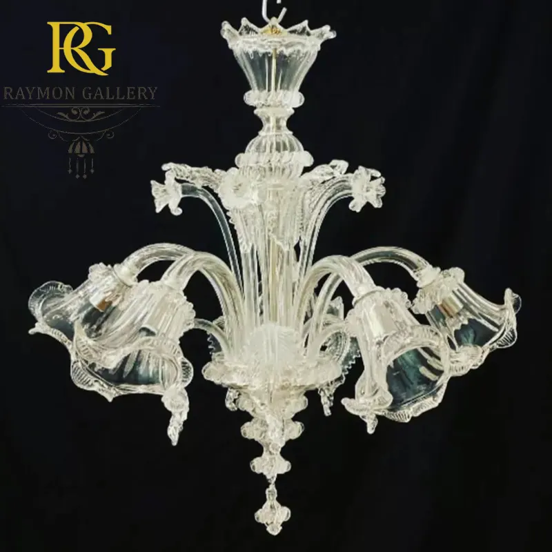 لوستر مدرن سبک مورانو گلبرگی شفاف سفید