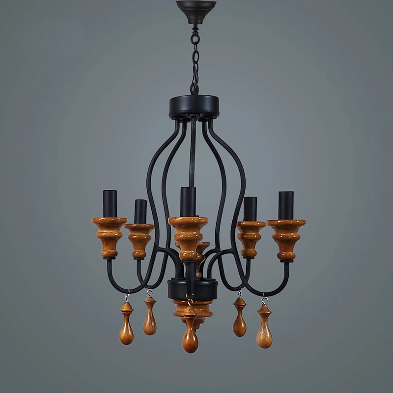 لوستر مدرن چوبی فلزی شاخه ای با آویز چوبی