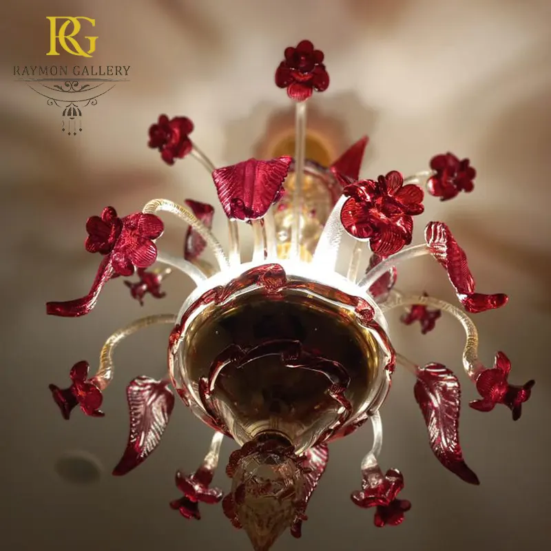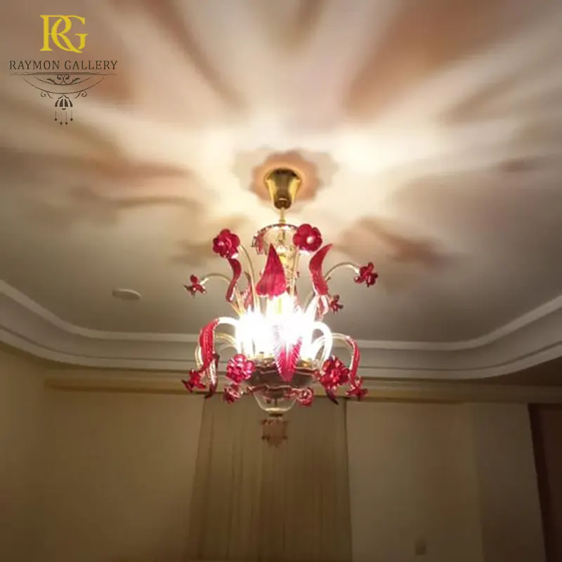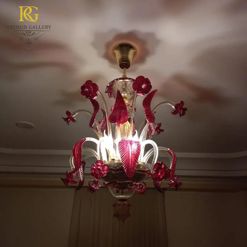 لوستر مورانو لنتر قرمز دست ساز لوکس